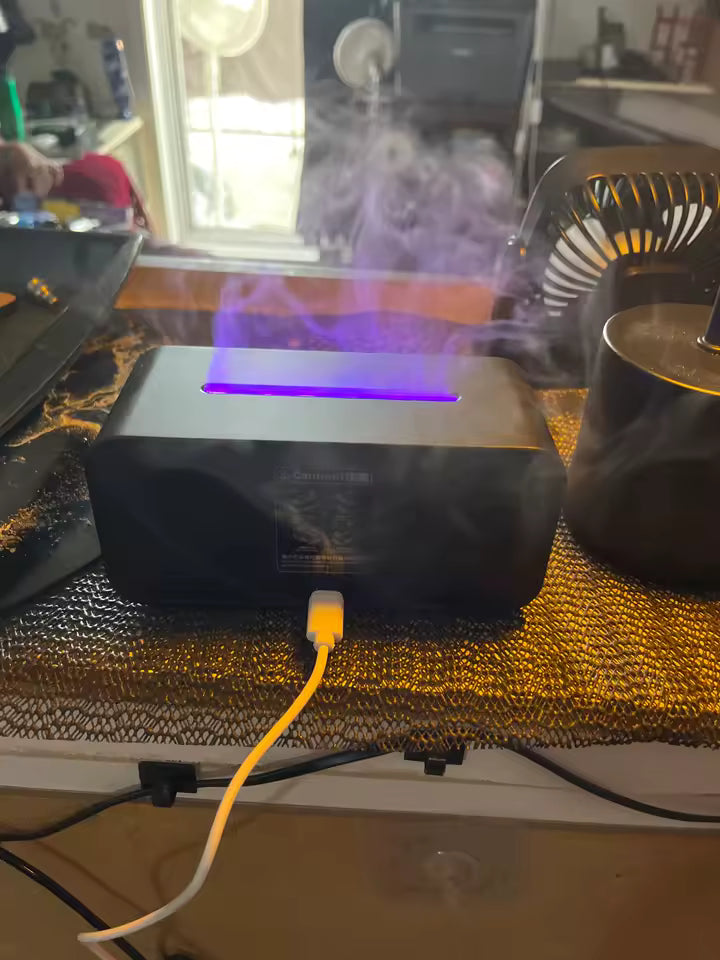 Este difusor de aromaterapia combina tecnología y diseño decorativo para crear un ambiente relajante y acogedor. Su efecto de llama realista y el anillo de humo tipo medusa generan una experiencia visual única que favorece la relajación y el bienestar.